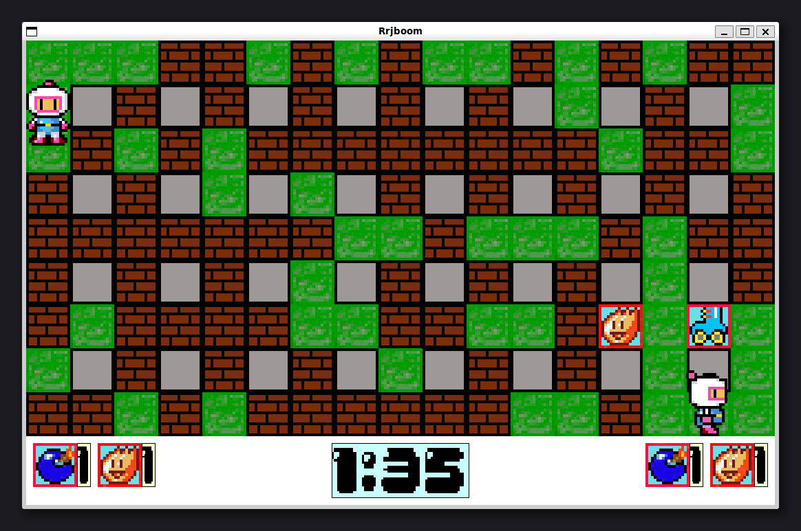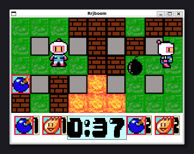 Bomberman-like à 2 joueurs humains, supportant différentes tailles de terrain et plusieurs bonus.
